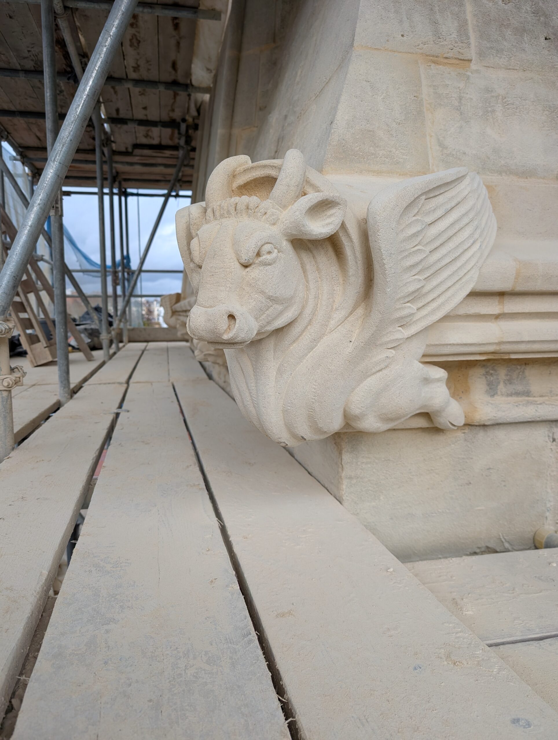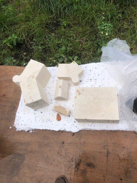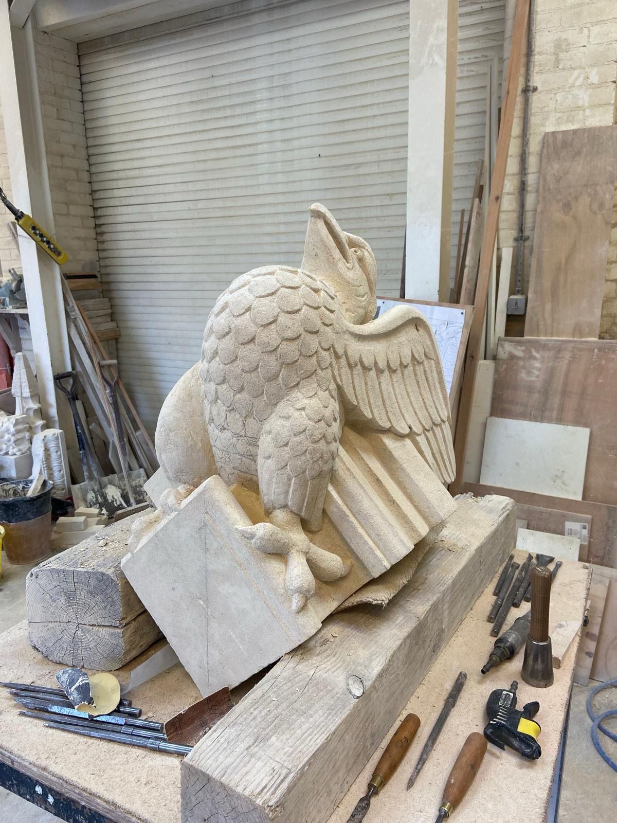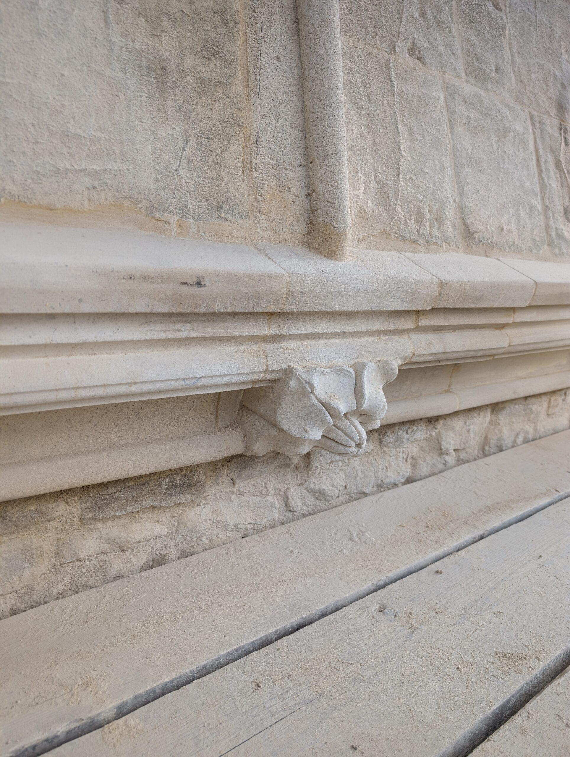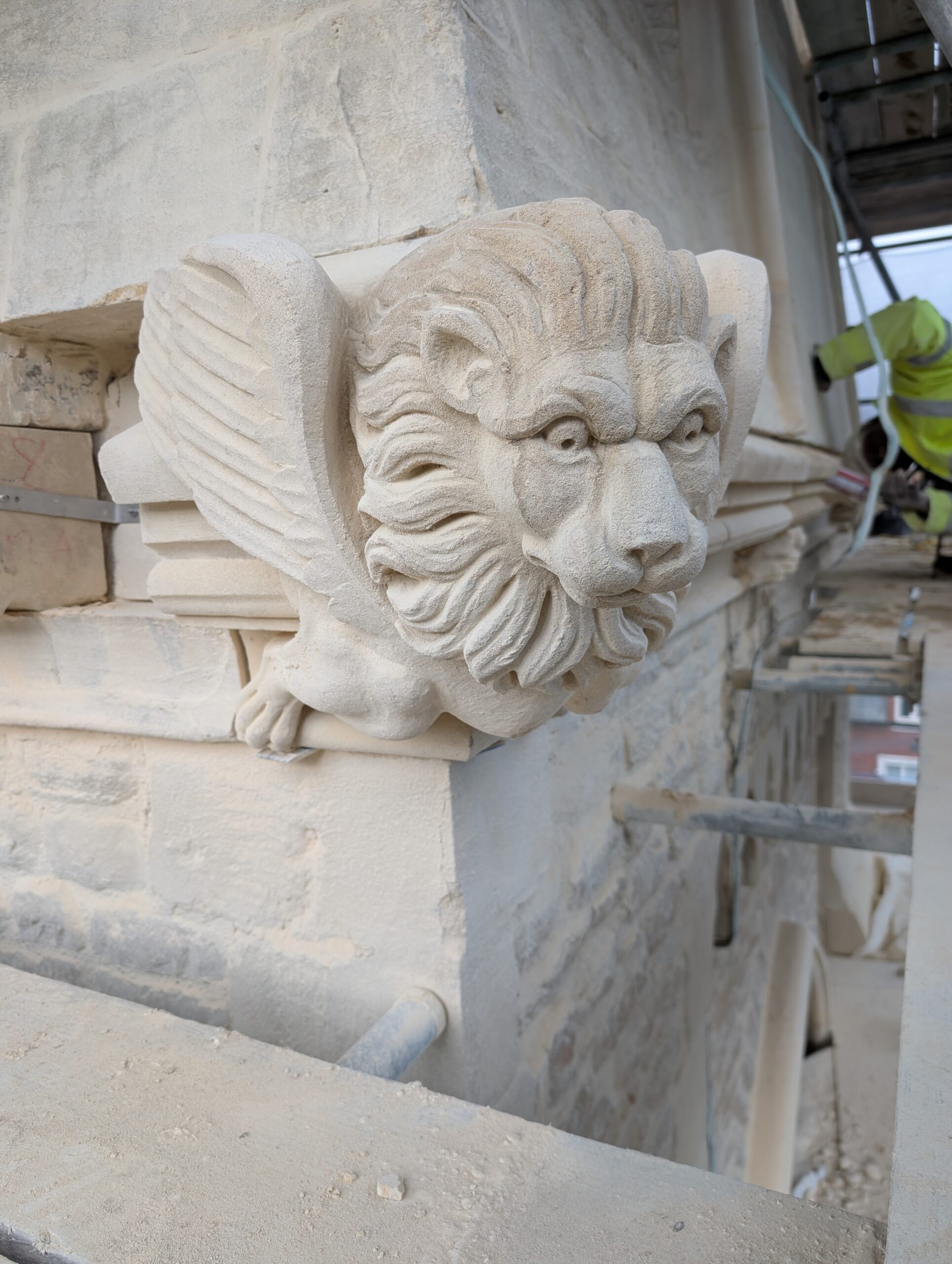 • Remaining stones for the entire project have been delivered, except for 4x grotesque, beasts to the lower gablet window, and the pilaster base of the column to the doorway.