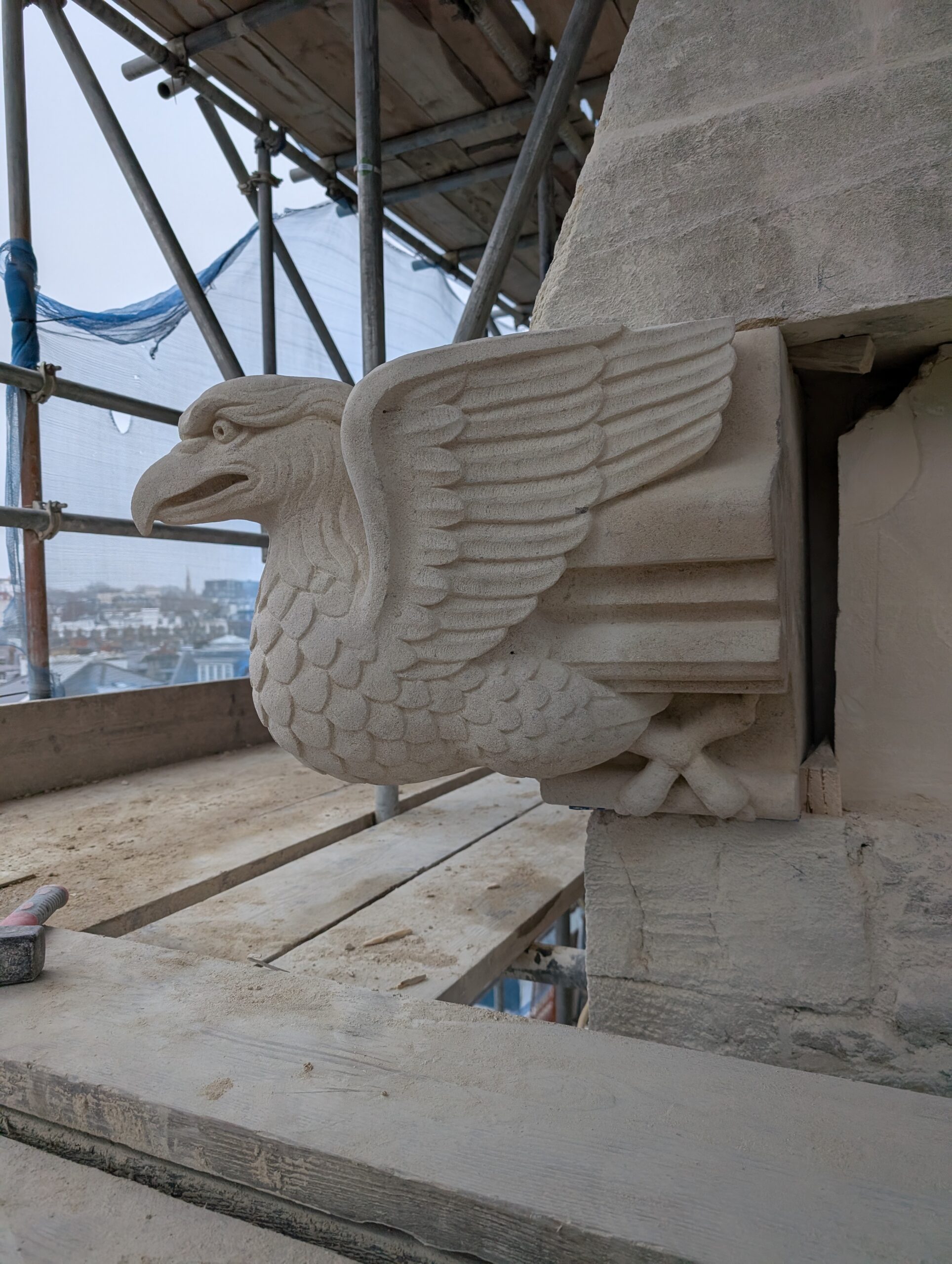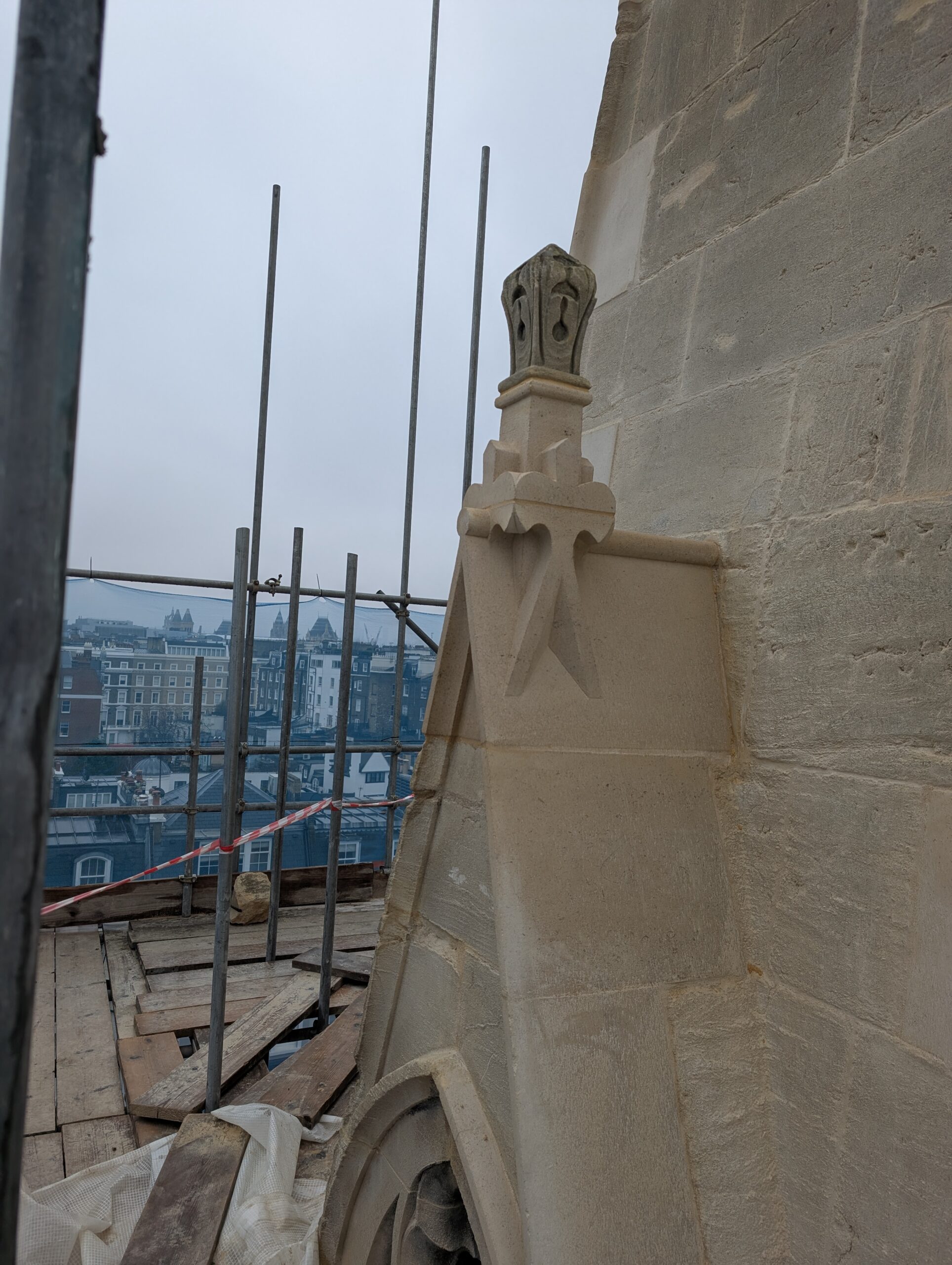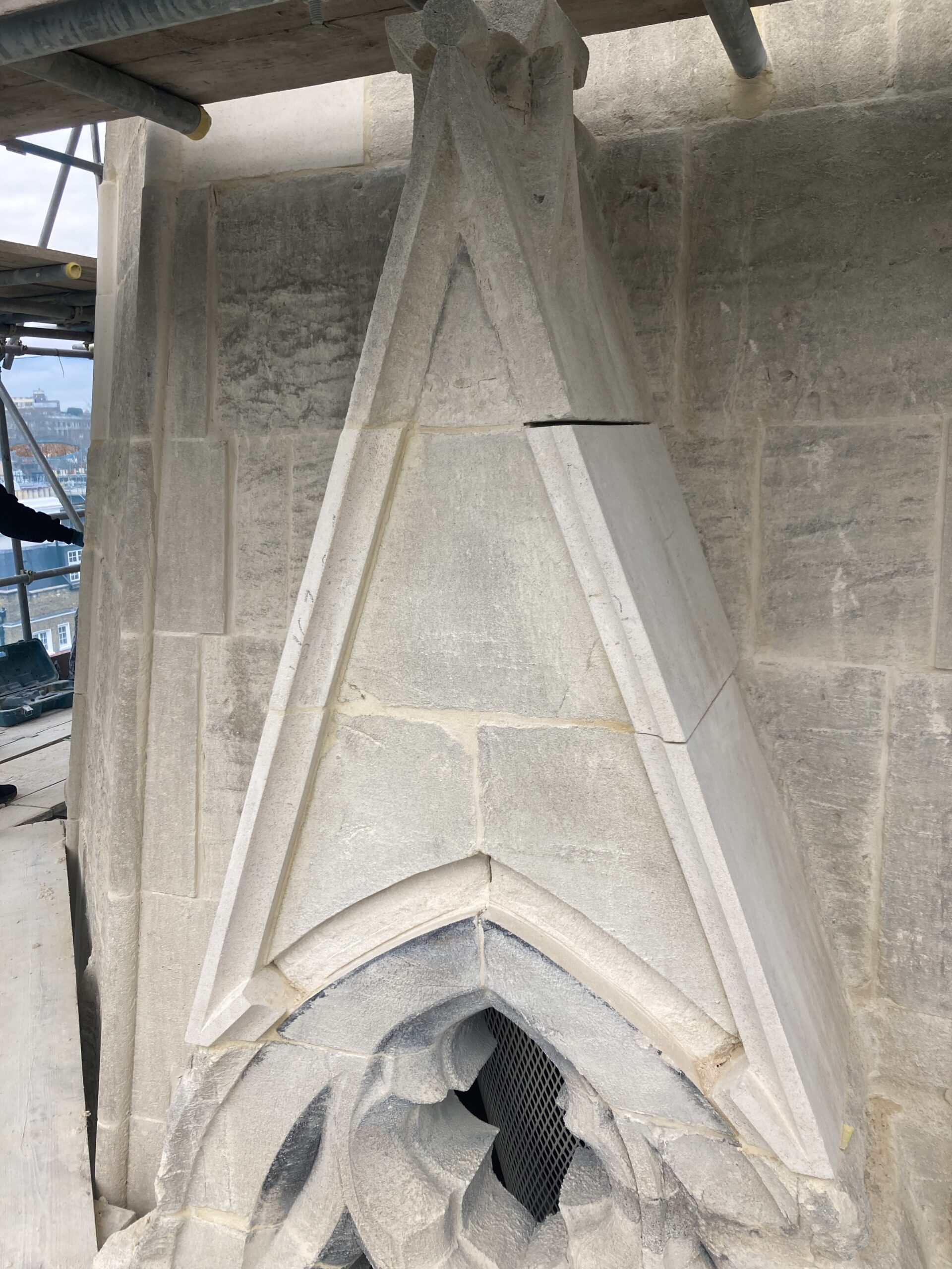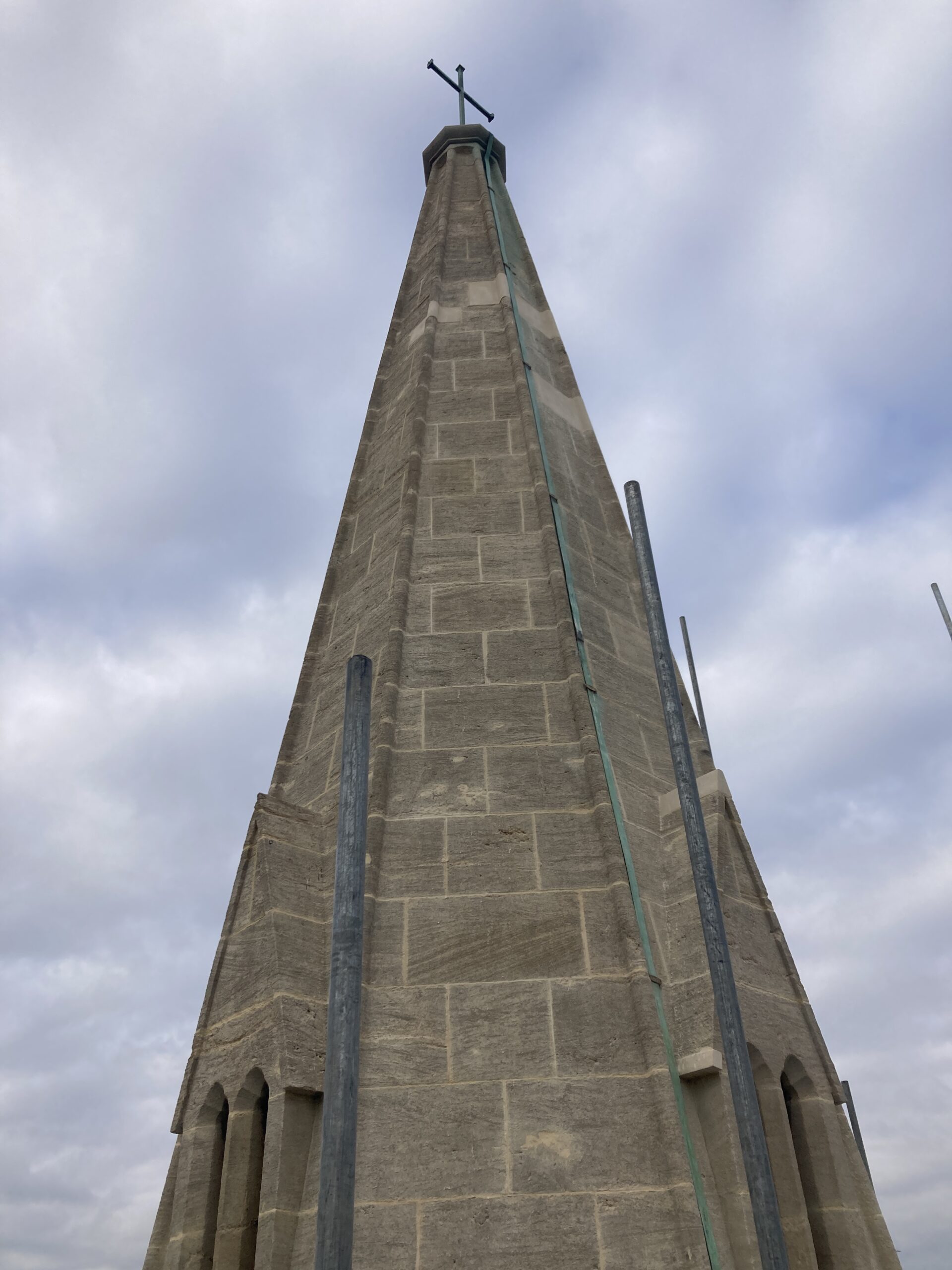 11 stones are to be replaced at the top of the spire soon after which the scaffolding will start to come down – meaning visible progress from the ground!