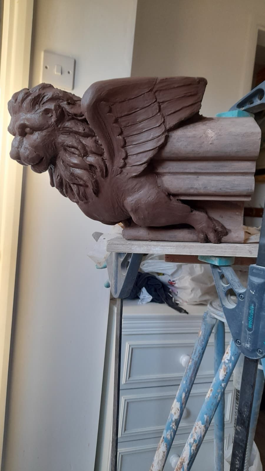 Architect has viewed half size clay models of the grotesques and approved the designs. They will take six weeks to carve.