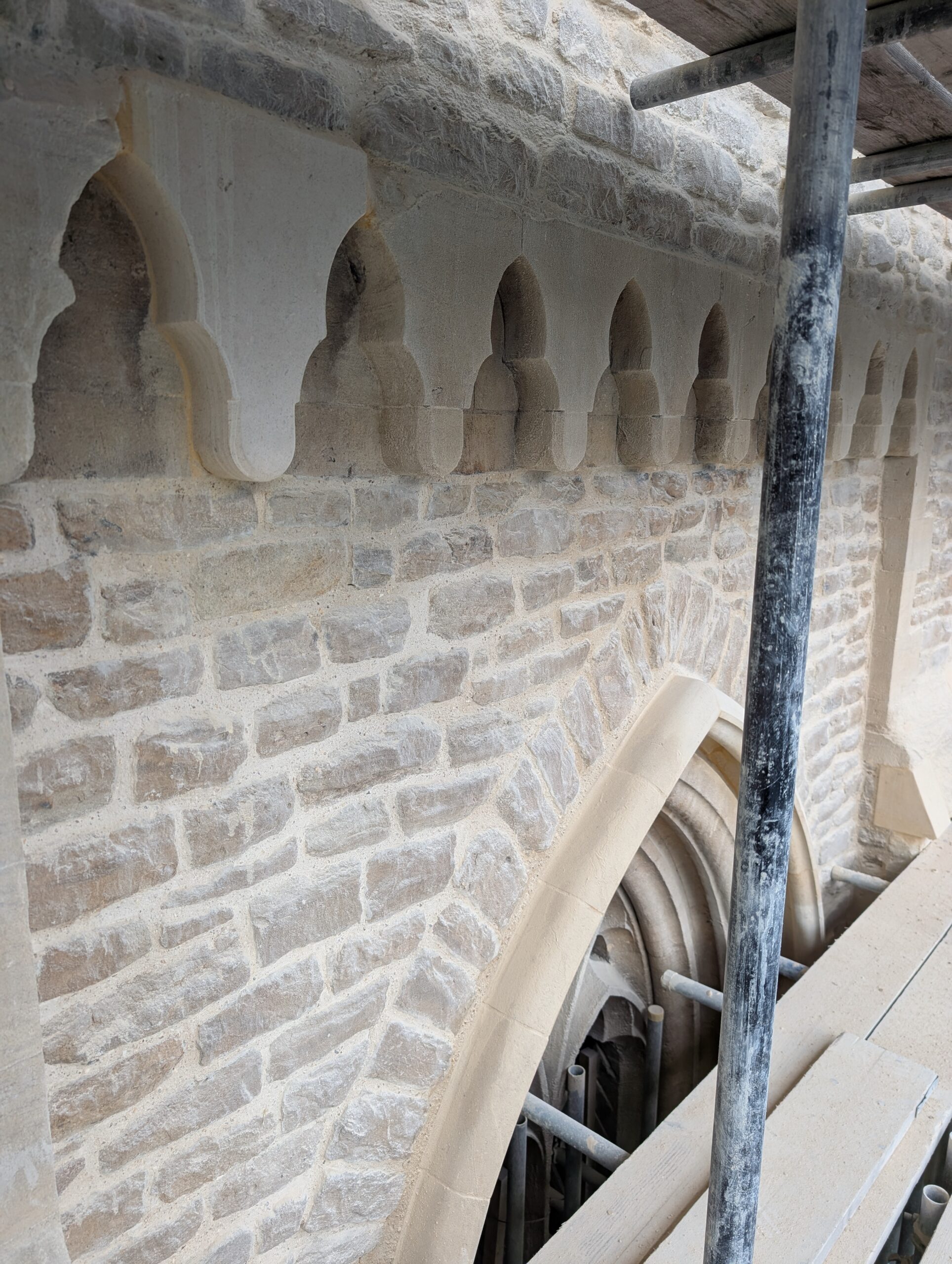 Mortar joints are being cut out and nearly complete in order for repointing to commence soon.
